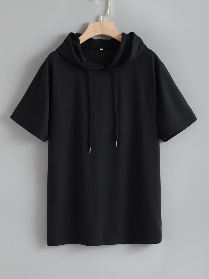 The Solid Black Short-Sleeve Hooded T-Shirt is the ultimate combination of minimalist design and modern edge. It pairs the timeless simplicity of a t-shirt with the contemporary touch of a lightweight hood, perfect for casual or elevated streetwear looks.